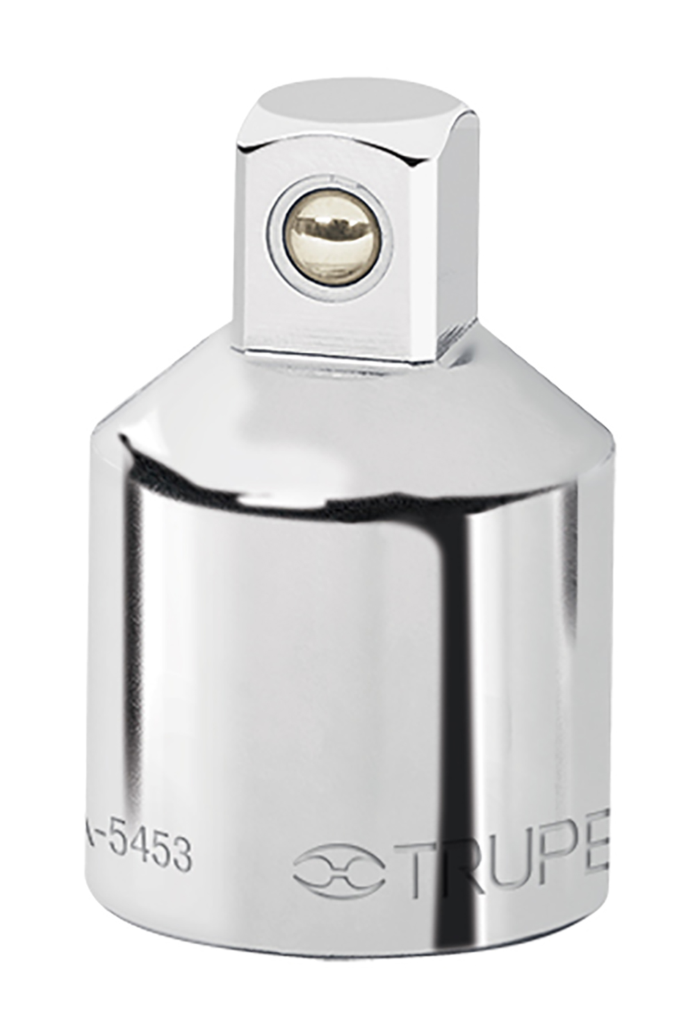 Clave Truper: A-5453. Cuadro: 3/4″ (19 mm) / 1/2″ (12,7 mm). Adaptador de cuadro 3/4″ (hembra) a cuadro 1/2″ (macho). Fabricado en acero al cromo vanadio.. 5 cm. TRUPER. 4500 lb/in (máx.)