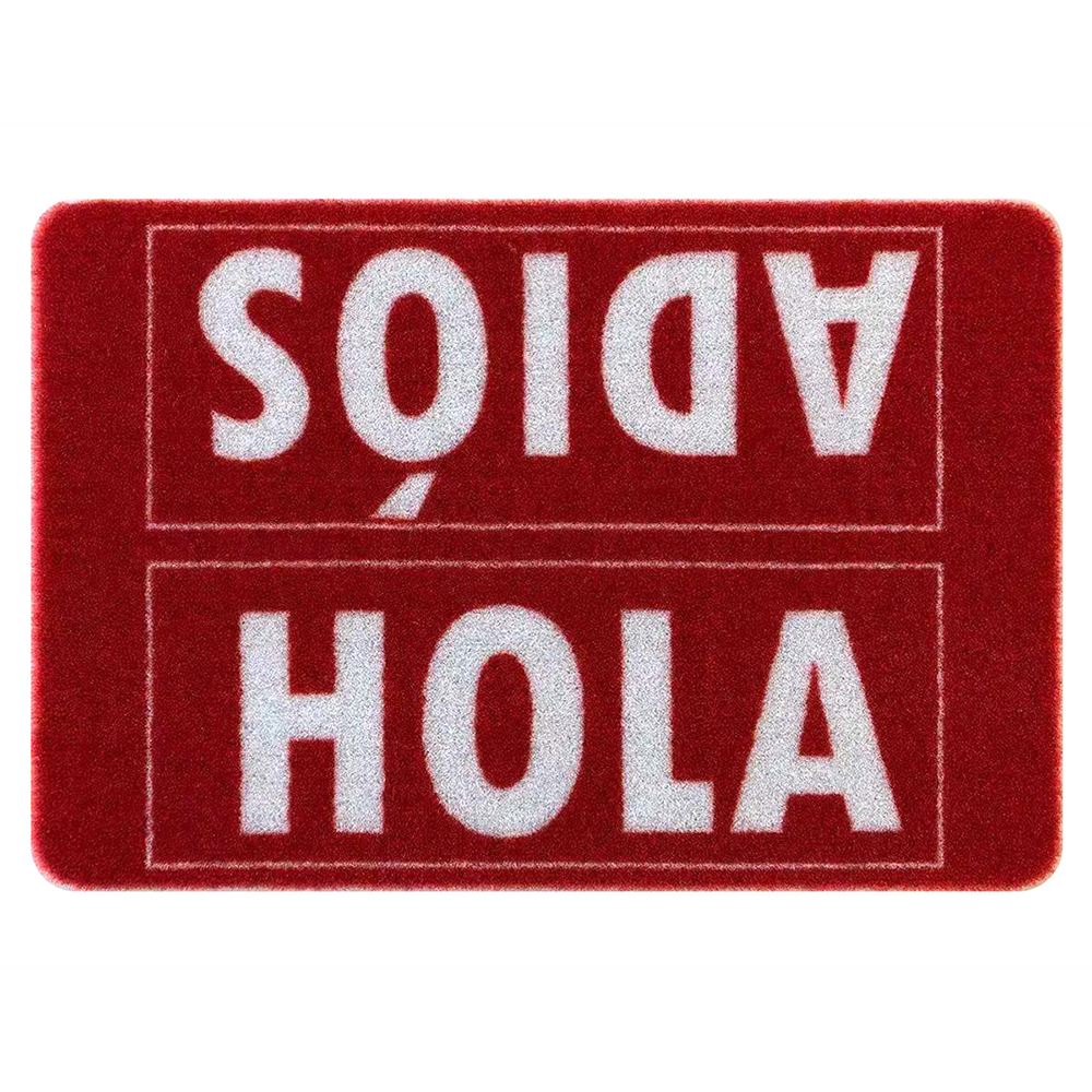 Color: Rojo. Composición: 23% poliéster + 77% PVC. Felpudo Max 12 de color rojo con estampado digital. Antideslizante, suave al taco y muy flexible. Con canto redondo y mensaje impreso. No pierde pelo.. 8 mm. AITANA. 40×60 cm