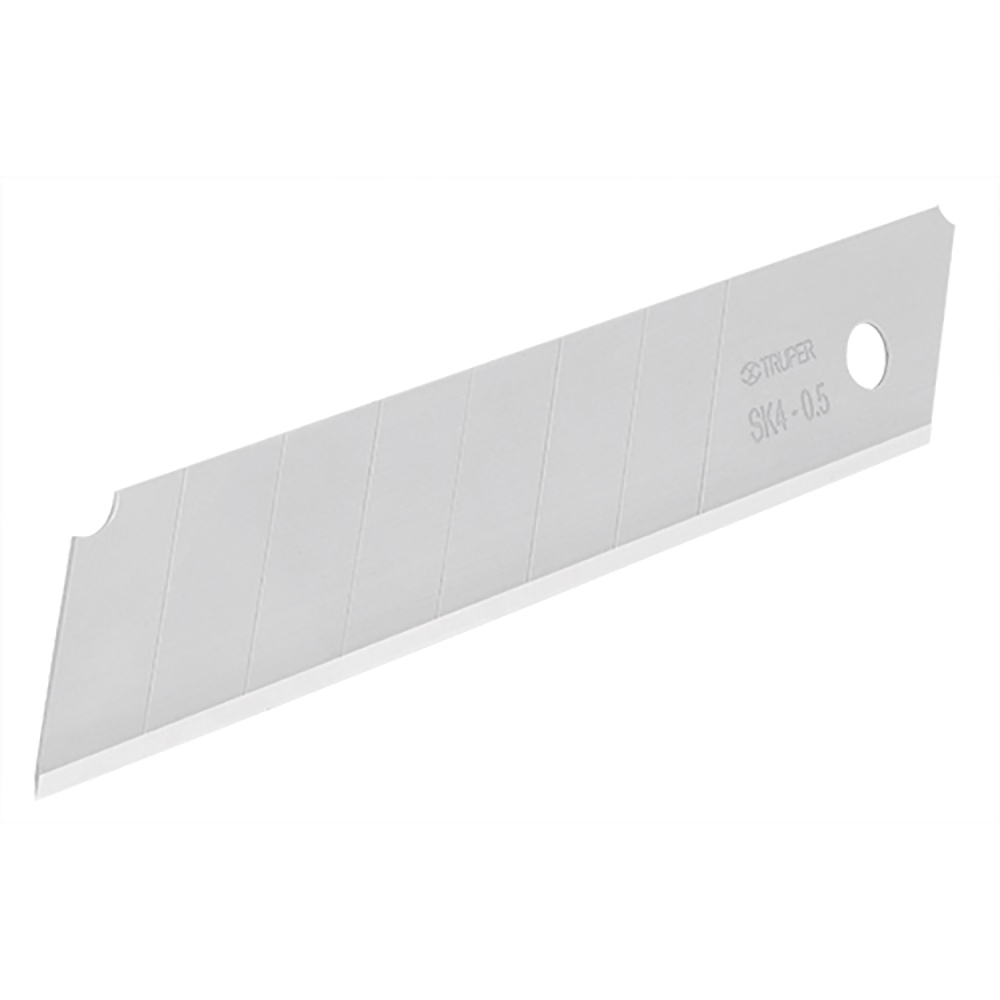 Ancho: 25 mm. Clave Truper: REP-CUT-7. Cuchillas de repuesto (10 uds), fabricadas en acero SK4, con doble bisel para cortes más preciso. Incluyen estuche. . 0,7 mm. TRUPER