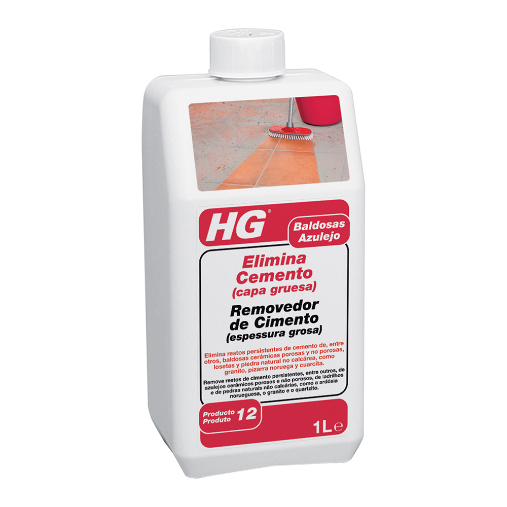 Descripción de producto: HG Elimina Cemento (Capa Gruesa) es un potente limpiador especializado para eliminar residuos de cemento en superficies baldosas. 1L.. HG