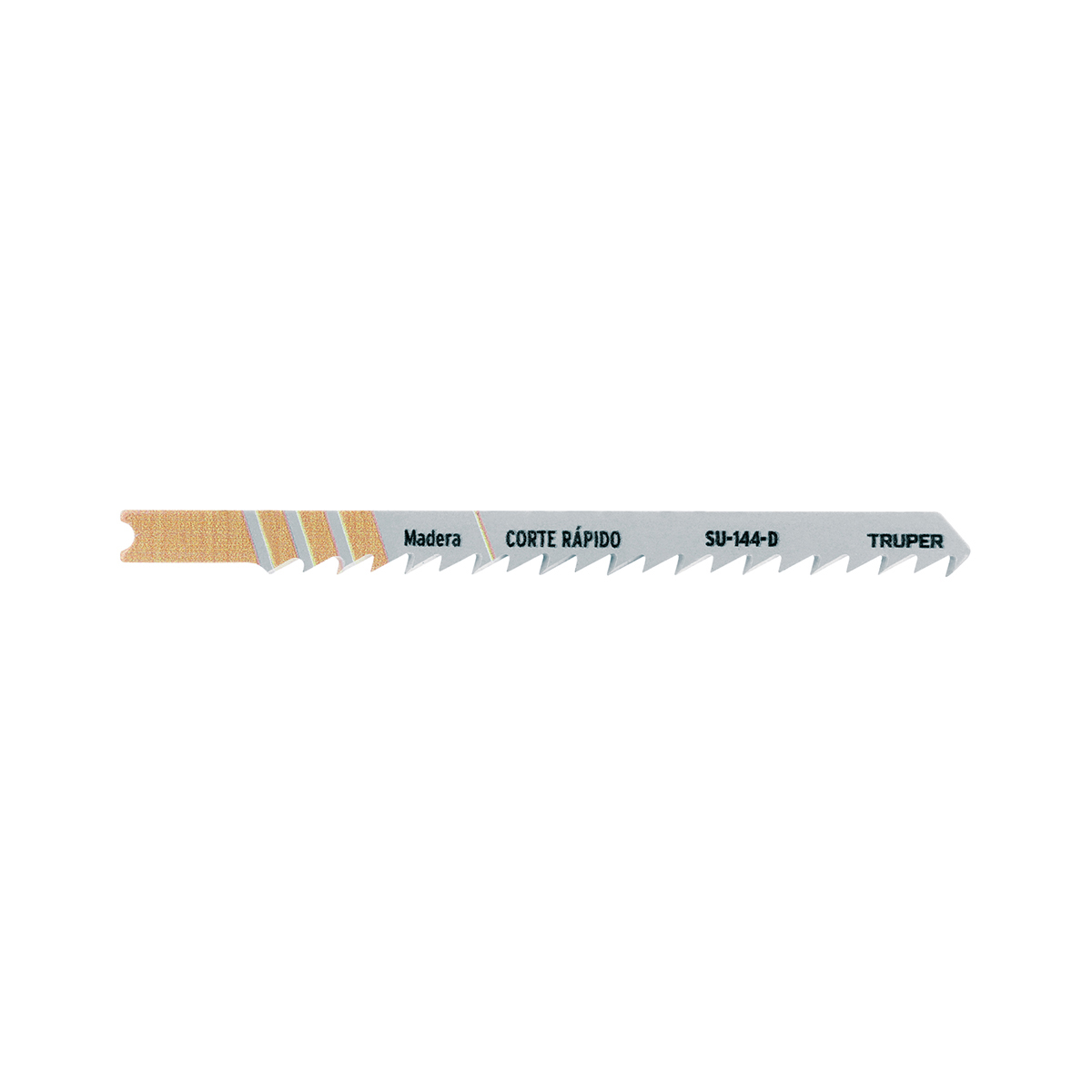 Clave Truper: SU-144-D. Hojas sierra calar de 6 DPP, para cortar madera y aglomerado. Hojas para un corte recto, limpio y rápido. Zanco tipo “U”. Fabricada de acero al cromo vanadio.. 10 cm. TRUPER. 5 Uds.