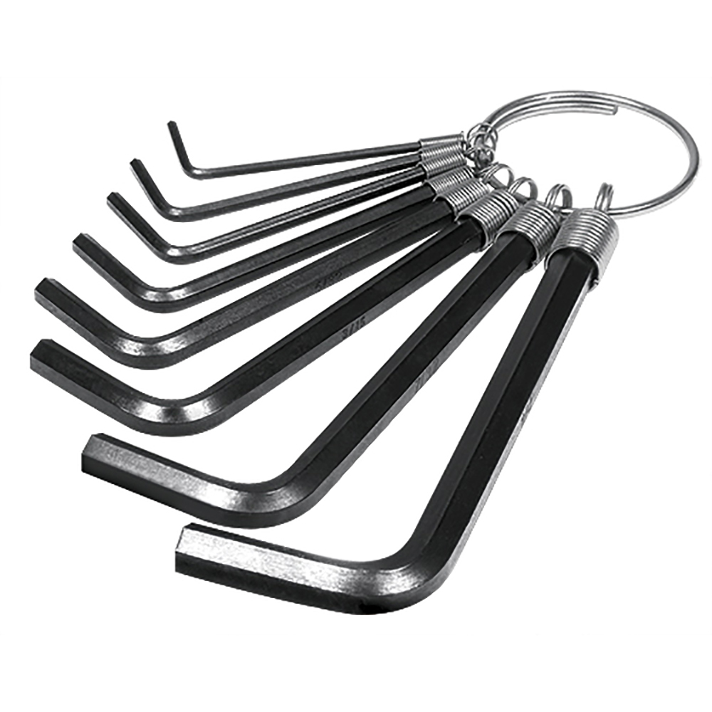 Clave Truper: ALL-P8M. Juego de 8 llaves Allen tipo llavero. Fabricadas en acero al carbono con acabado pavonado. Llaves milimétricas con punta hexagonal.. 8 llaves – 1.5 mm, 2 mm, 2.5 mm, 3 mm, 4 mm, 5 mm, 5.5 mm, 6 mm.. PRETUL