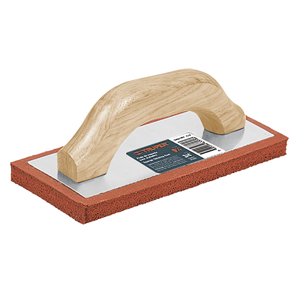 Clave Truper: FL-10. Llana de esponja con mango de madera. Acabado áspero, diseñada para trabajar con cementos o pastas.. 19 mm (3/4″). TRUPER. 240×100 mm