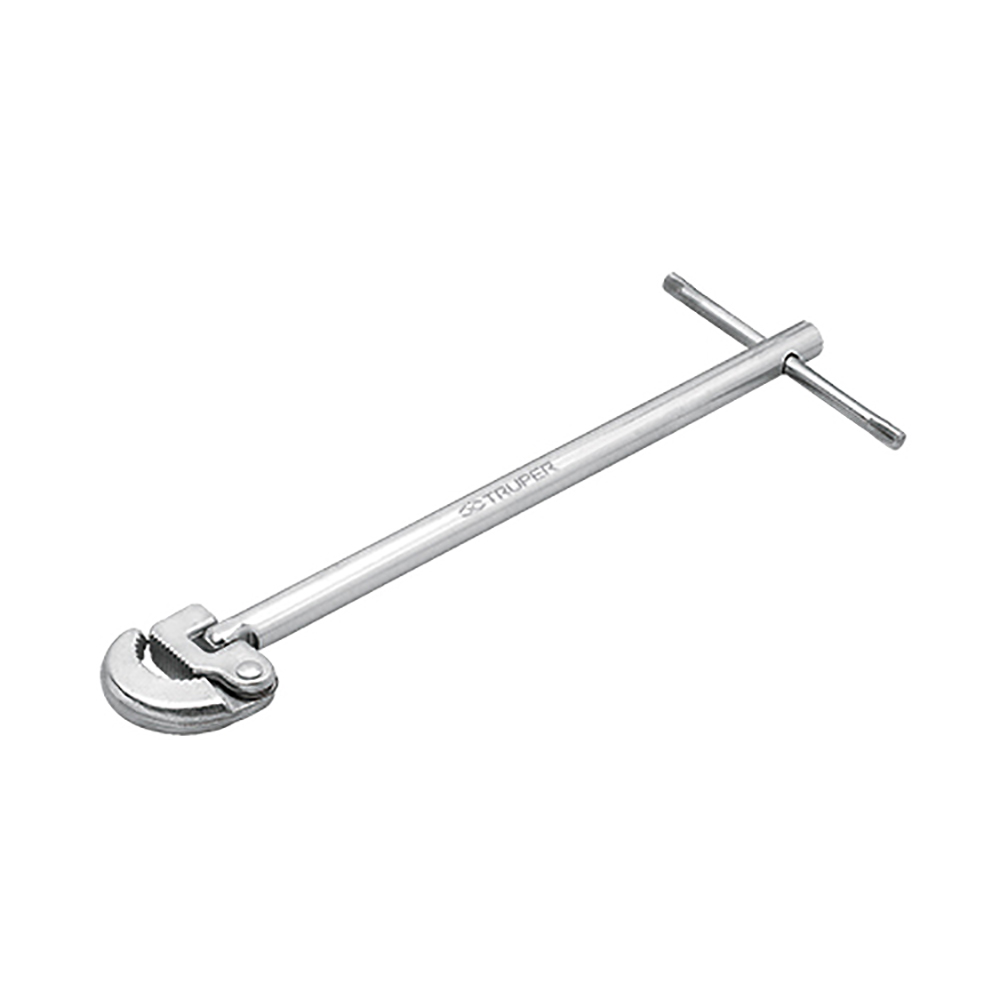Capacidad: 13 mm – 25 mm. Clave Truper: LLAP-12. Llave de acero al carbono para lavabo. Con mordazas dentadas autoajustables hasta 90º que se activan por resorte para así garantizar una máxima presión y evitar posibles desplazamientos. Ideal para espacios reducidos y trabajos con una sola mano.. 300 mm. TRUPER
