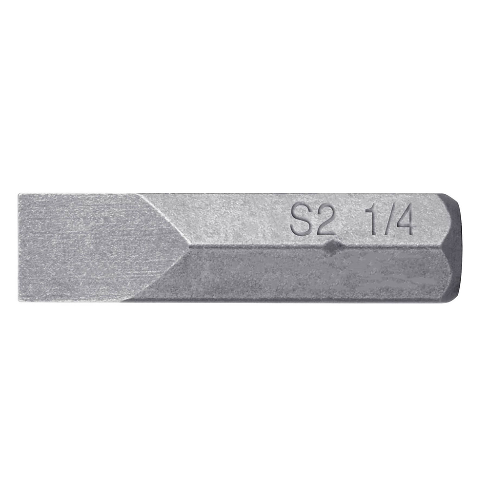 Clave Truper: PUDE-3125. Puntas planas, P25, para destornillador. Fabricadas en acero S2 muy resistentes al desgaste. Maquinado para un ajuste preciso. Estuche reutilizable. Paso: 1/4″.. 25 mm. TRUPER EXPERT. P25. 1/4″ (6,35 mm). 5 Uds.
