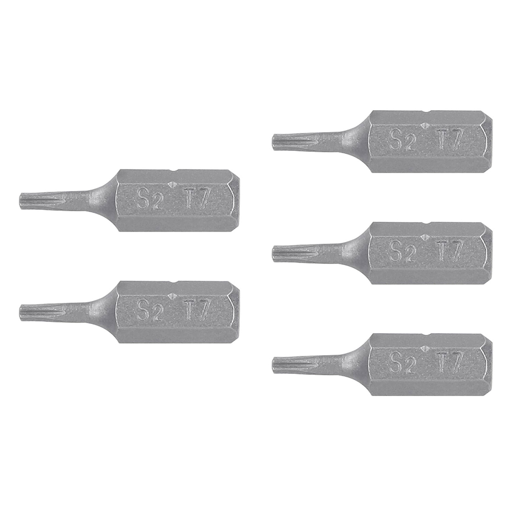 Clave Truper: PUDE-5107. Puntas Torx T7 para uso con destornillador eléctrico, manual y taladro. Fabricadas en acero S2 muy resistente al desgaste, maquinado para un ajuste preciso y vástago de 1/4″. Incluye un estuche reutilizable para mantenerlas organizadas.. 25 mm. TRUPER EXPERT. T7. 5 Uds.