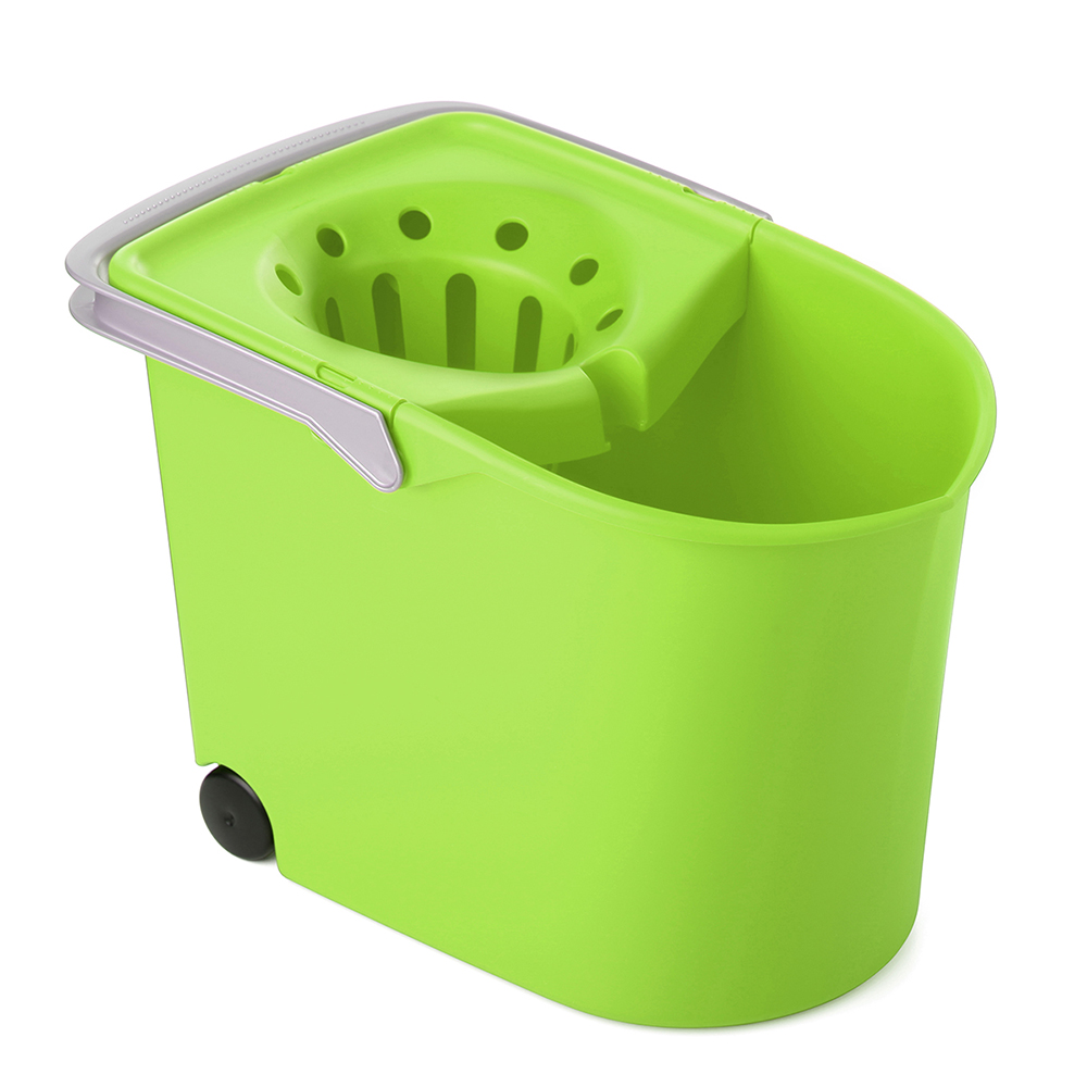 Color: Lima. Cubo escurridor con ruedas para facilitar el transporte y escurrido de mopas y trapeadores en entornos comerciales e industriales.. TATAY